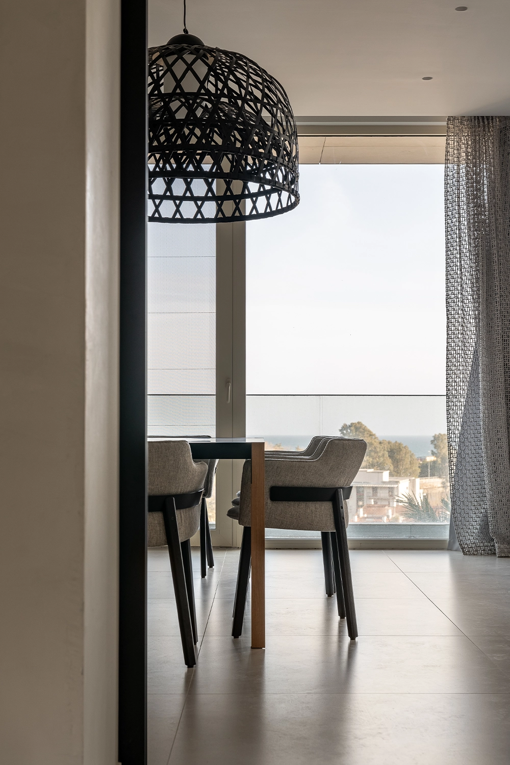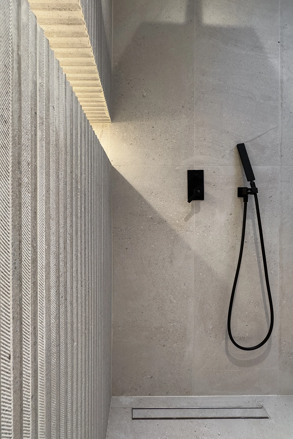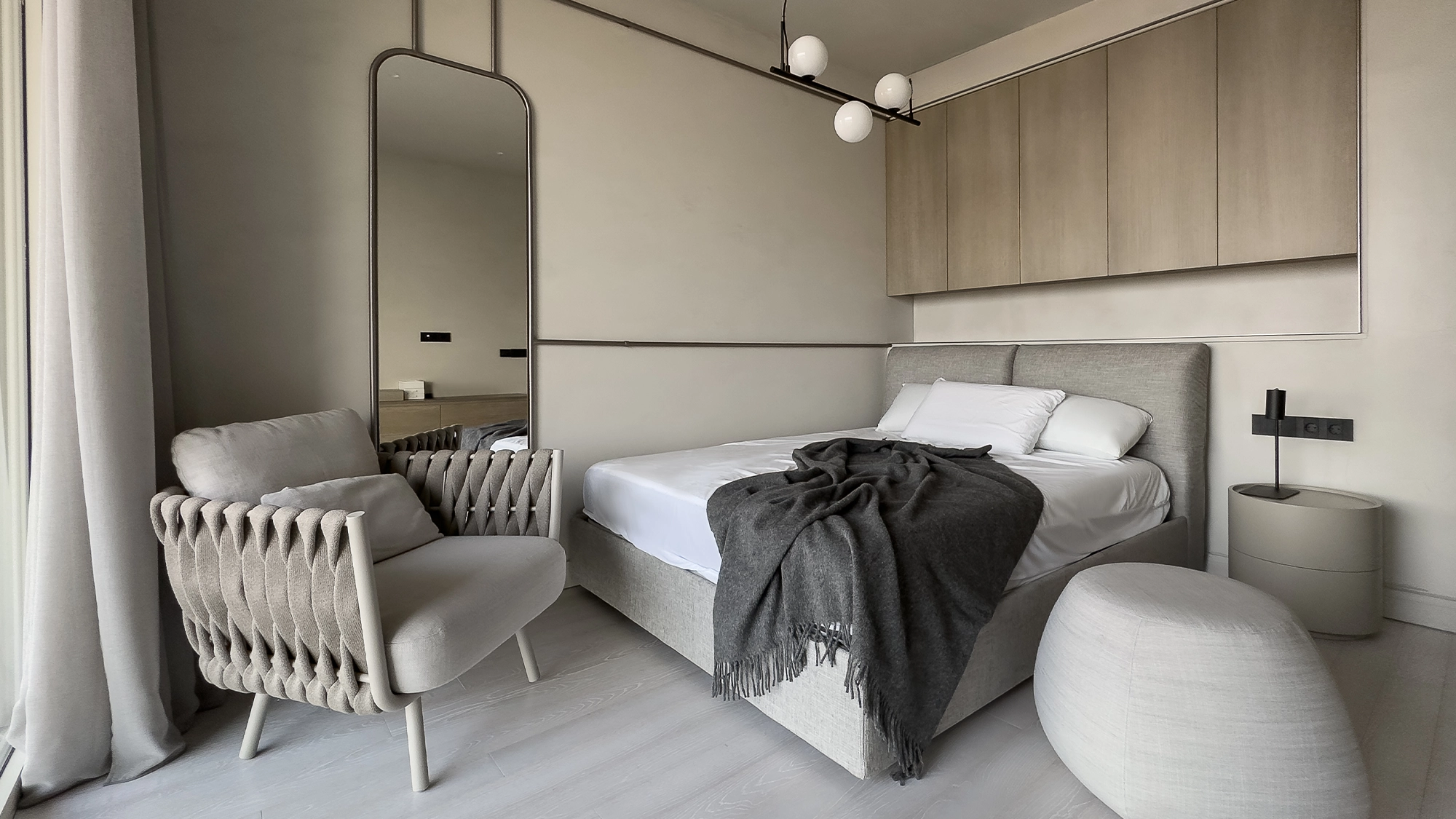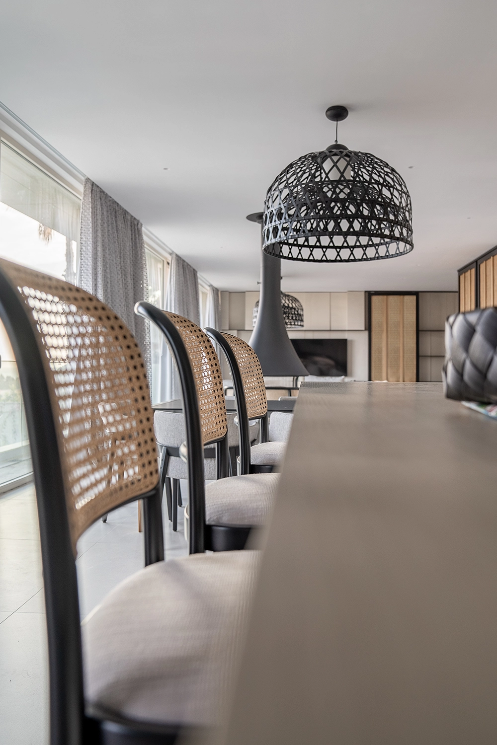A soft palette of light beige flows through the spaces, where microcement walls and granite floors breathe both calm and coolness. Accents of rattan and black metal draw the eye, balancing serenity with strength. In the private rooms, wood veneers and blossoms infuse warmth and individuality, each space reflecting its inhabitant’s rhythm.