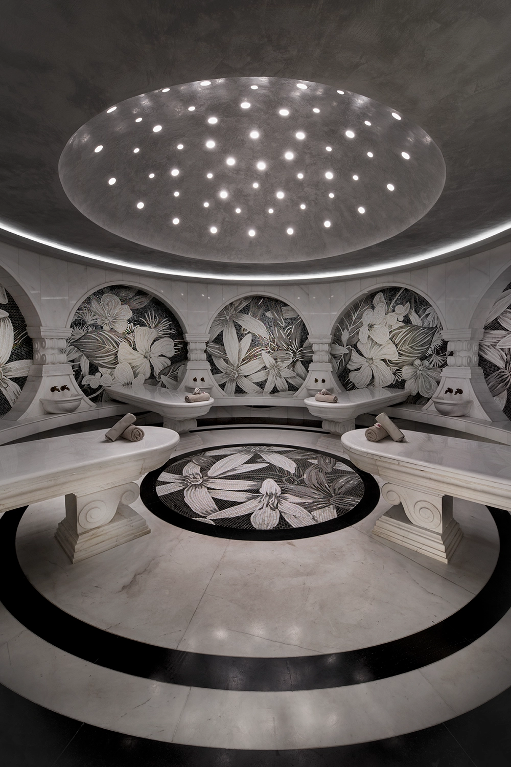 Here, wellness transforms into something more – an exquisite feast for the soul, composed entirely of indulgent delights. A remarkable indoor pool, a 16-person jacuzzi, a hammam inspired by floral motifs, a sauna, a steam bath, and a shock pool await. For even greater peace of mind, private and double massage rooms, a VIP suite, and a serene relaxation zone offer respite, while a beauty salon, yoga and pilates studio, fitness center, and nourishing bars complete the sanctuary.