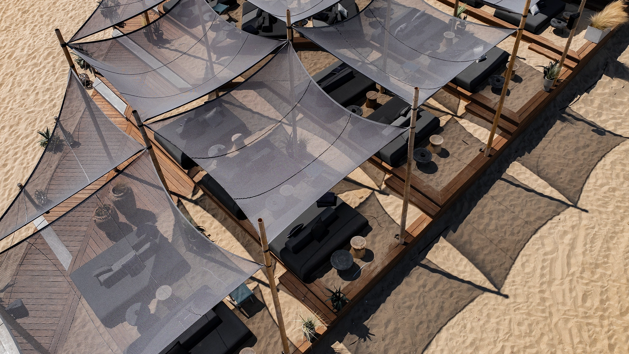 NOIR rises from the southern Black Sea coast, mixing marine craftsmanship, concrete, natural elements, and charred wood shaped by the heat. It stands as a luxurious oasis on 11 decare of beach, dunes, lilies, and shoreline – an exclusive resort imagined as a park that merges with the natural reserve.