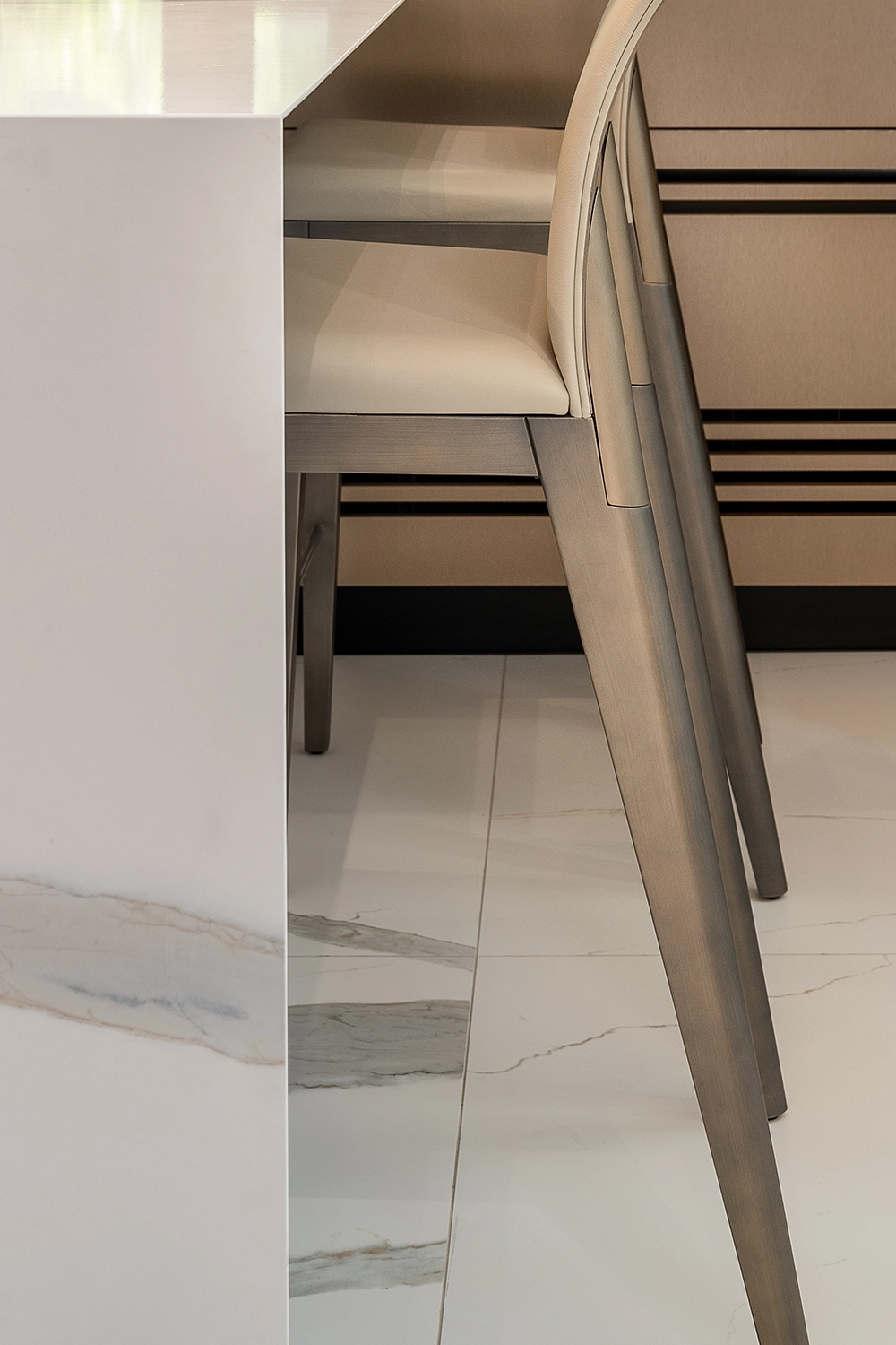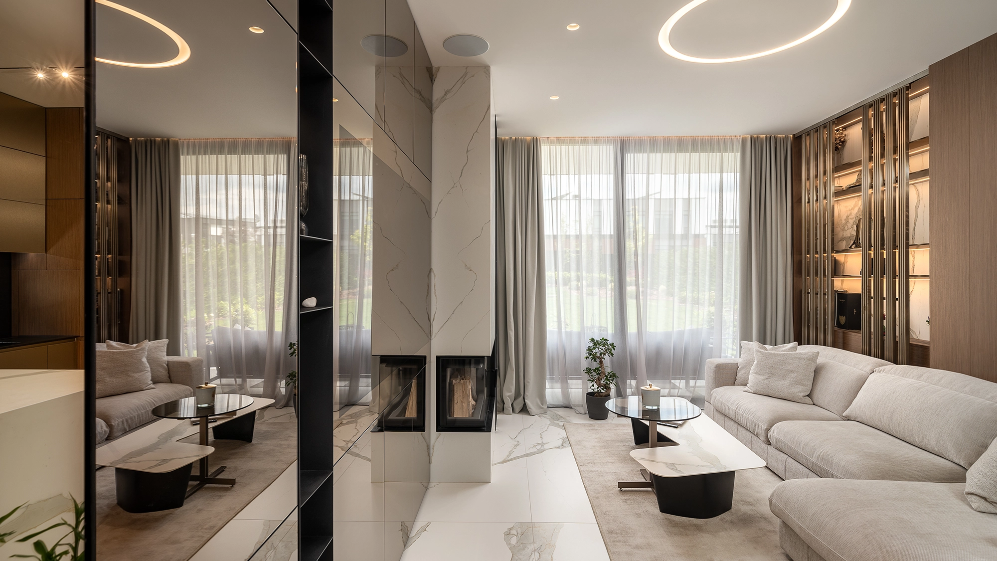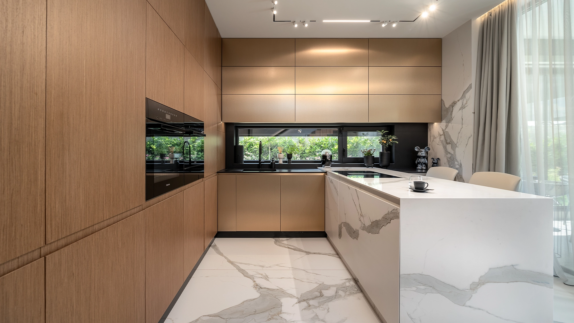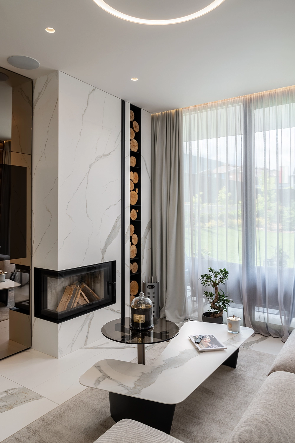 Nestled at the foot of Vitosha Mountain, this family home blends the needs of contemporary living with the quiet luxury offered by its surroundings. Flowing lines of wood intertwine with marble-like surfaces, mirroring the subtle sparkle of its inhabitants. Soft, light-toned textiles deepen the sense of calm, comfort, and gentle silence.